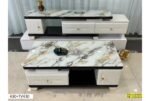 Accueil MOBILIER & DECORATION Ensemble Meuble TV & Table Basse – Style Moderne Marbre Blanc