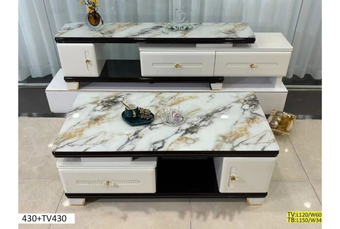 💡 Utilisation : Idéal pour un salon moderne, offrant à la fois praticité et raffinement. La table basse peut accueillir fruits, fleurs ou décorations, tandis que le meuble TV optimise l’espace multimédia.