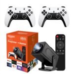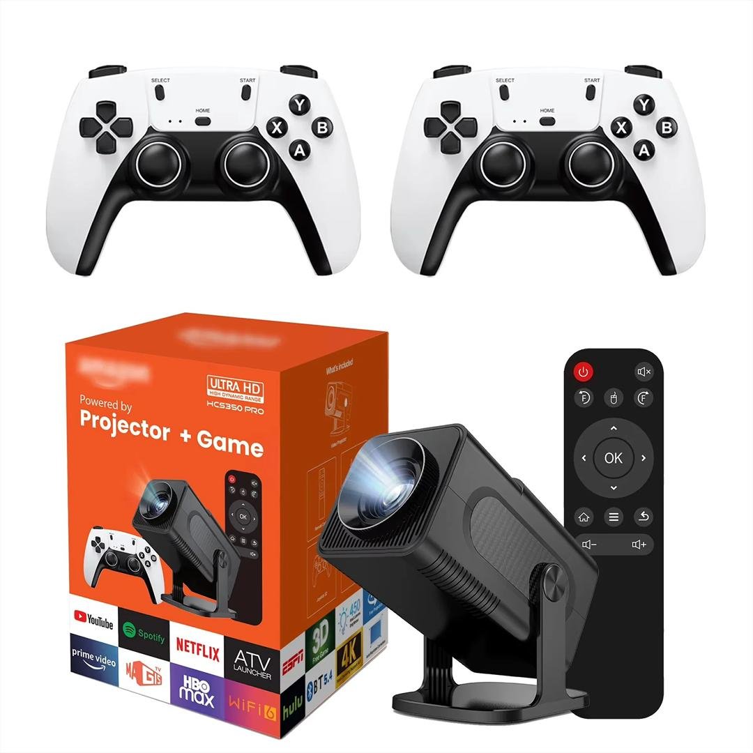 Projecteur console rétro – Projecteur de jeux professionnel 2 en 1, projecteur HD 4K avec jeux rétro intégrés, projecteur TV intelligent pour intérieur et extérieur, cadeau de Noël pour enfants